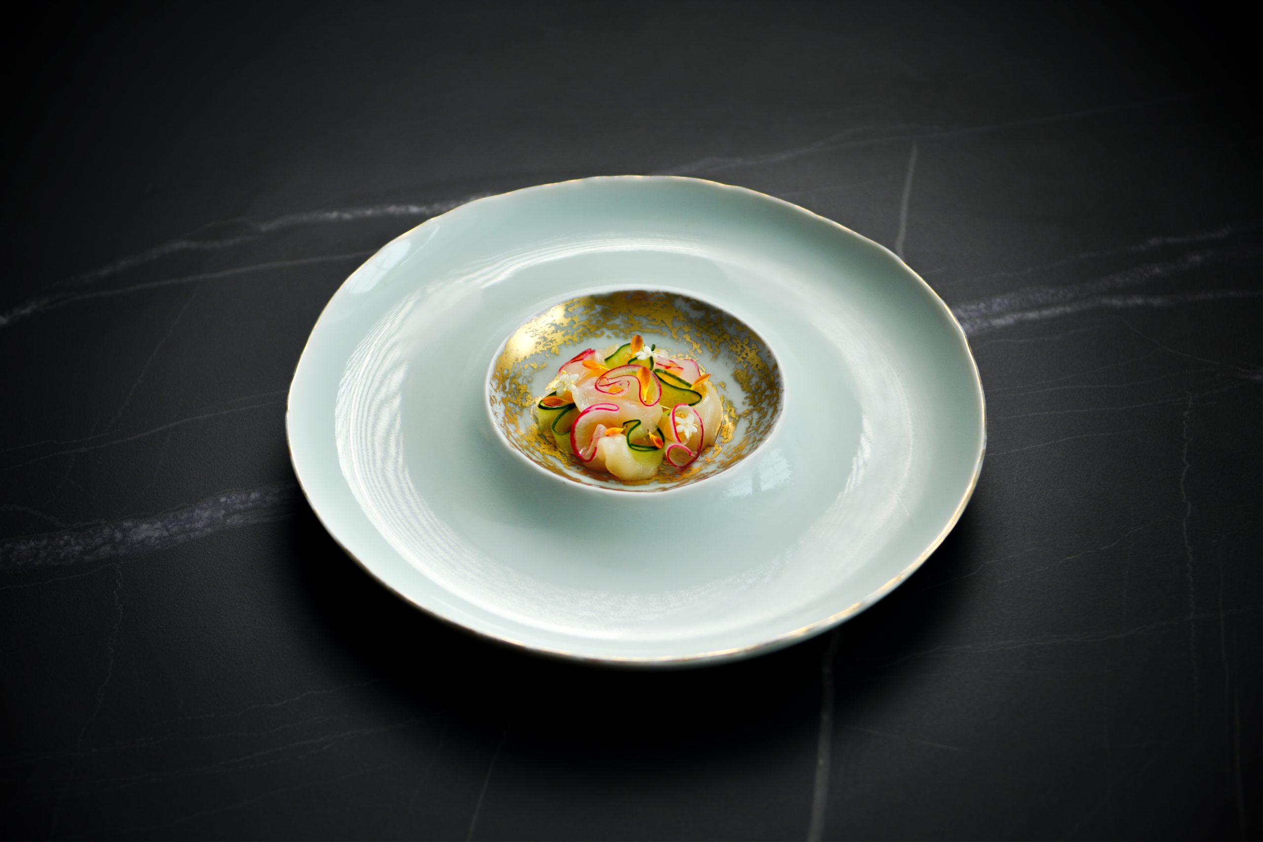Black-and-white interiors create an atmosphere of quiet opulence combined with gastronomy and discreet service. The degustation menus can be tailored for the occasion.